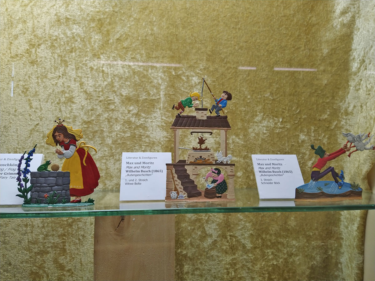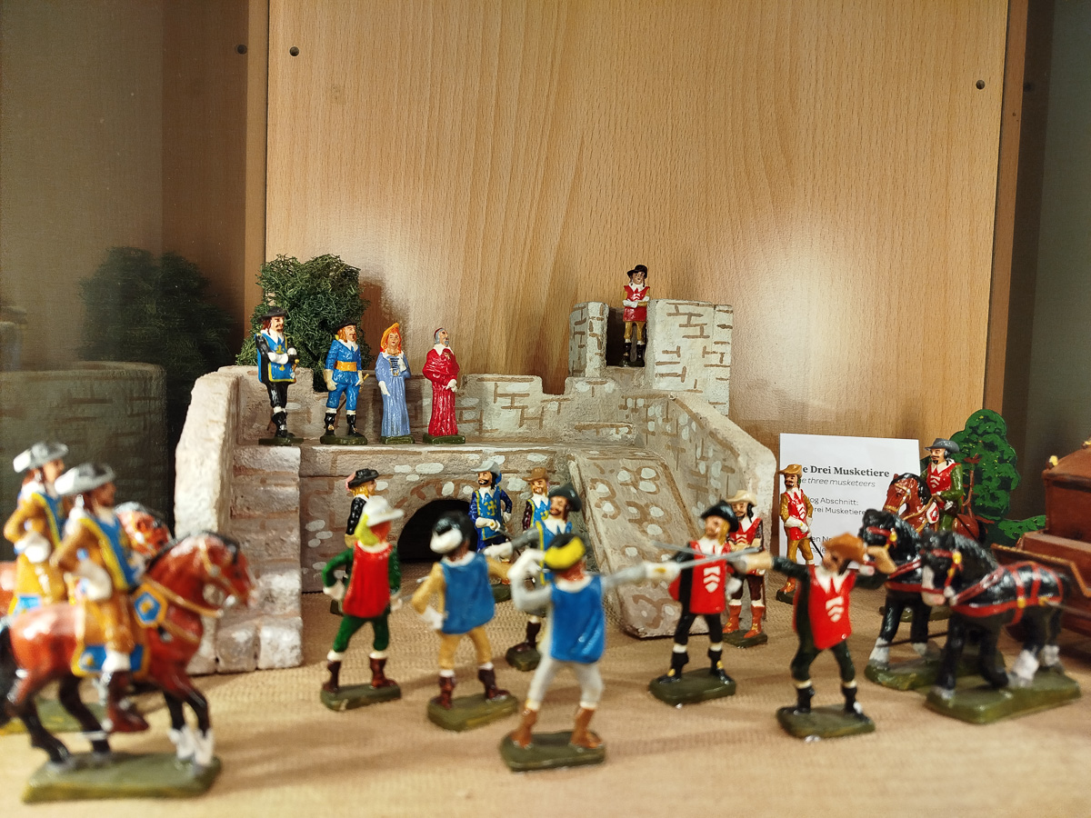 Schon seit vielen Jahren wird in einem Teil der Dauerausstellung das Thema „Literatur und die Zinnfigur“ behandelt. Dieser Bereich wurde heuer stark vergrößert und zeigt viele neue Zinnfiguren in Zusammenhang mit Büchern. So konnten zusätzliche Märchenfiguren ausgestellt werden, ganz besonders zu erwähnen sind Märchenszenen in passenden Theaterkulissen. Aber auch Szenen aus der Bibel, aus der klassischen Literatur bis hin zu Casanova in Venedig werden in den Schaubildern lebendig.