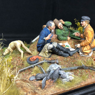 Aktuelle Projekte: „Jägerlatein“, Jäger bei der Rast, (Russland, 20. Jhdt.) Diorama mit 75mm-Figuren „Löwenjagd“, …