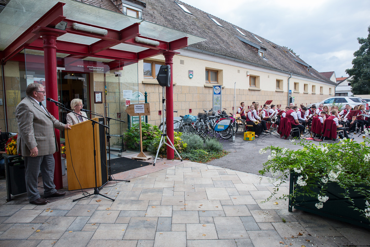 Für die musikalische Umrahmung sorgte die Jugendblasmusik Katzelsdorf am Festplatz, sowie die beiden Erlacherinnen Mag. Traude Wiesbauer am Klavier und Irene Hruby mit Chansons von Marlene Dietrich und Marilyn Monroe in der Kaffeebar im Obergeschoß.