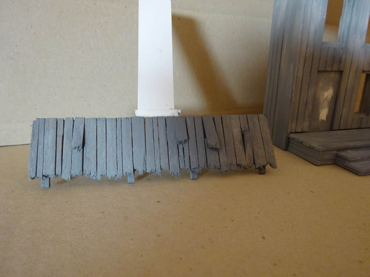 Man kann Rost aufbringen, Moos auf den Dächern, Staub aller Art, kleine Steine, Absplitterungen, usw.