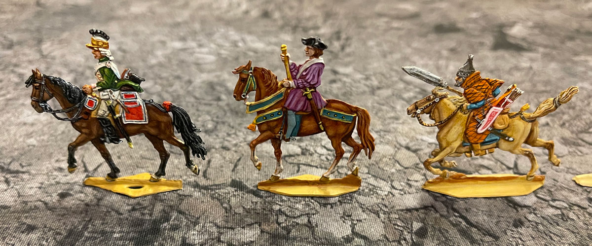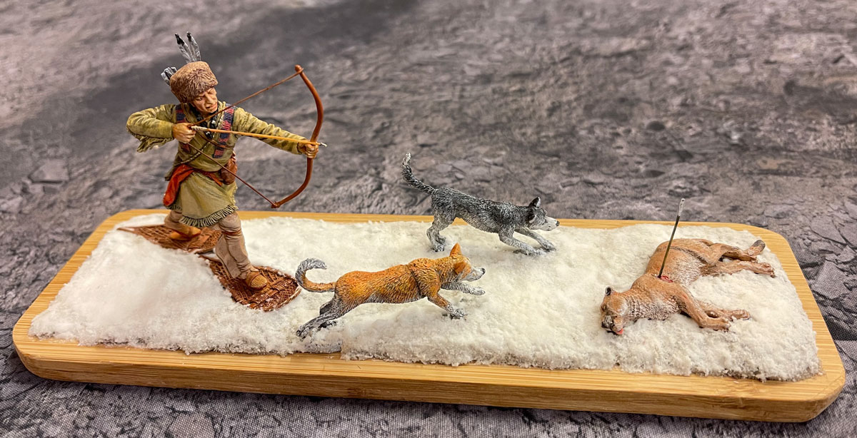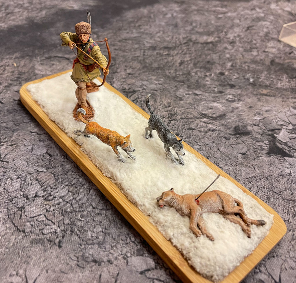 Auch Josef hat wieder einiges fertig gestellt und uns seine aktuellen Arbeiten mitgebracht – 30mm Flachfiguren und eine winterliche Jagdszene (Vollplastisch 54mm).