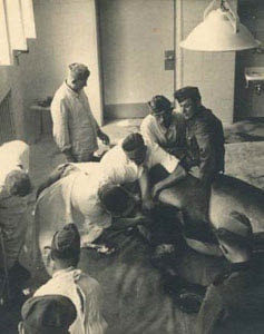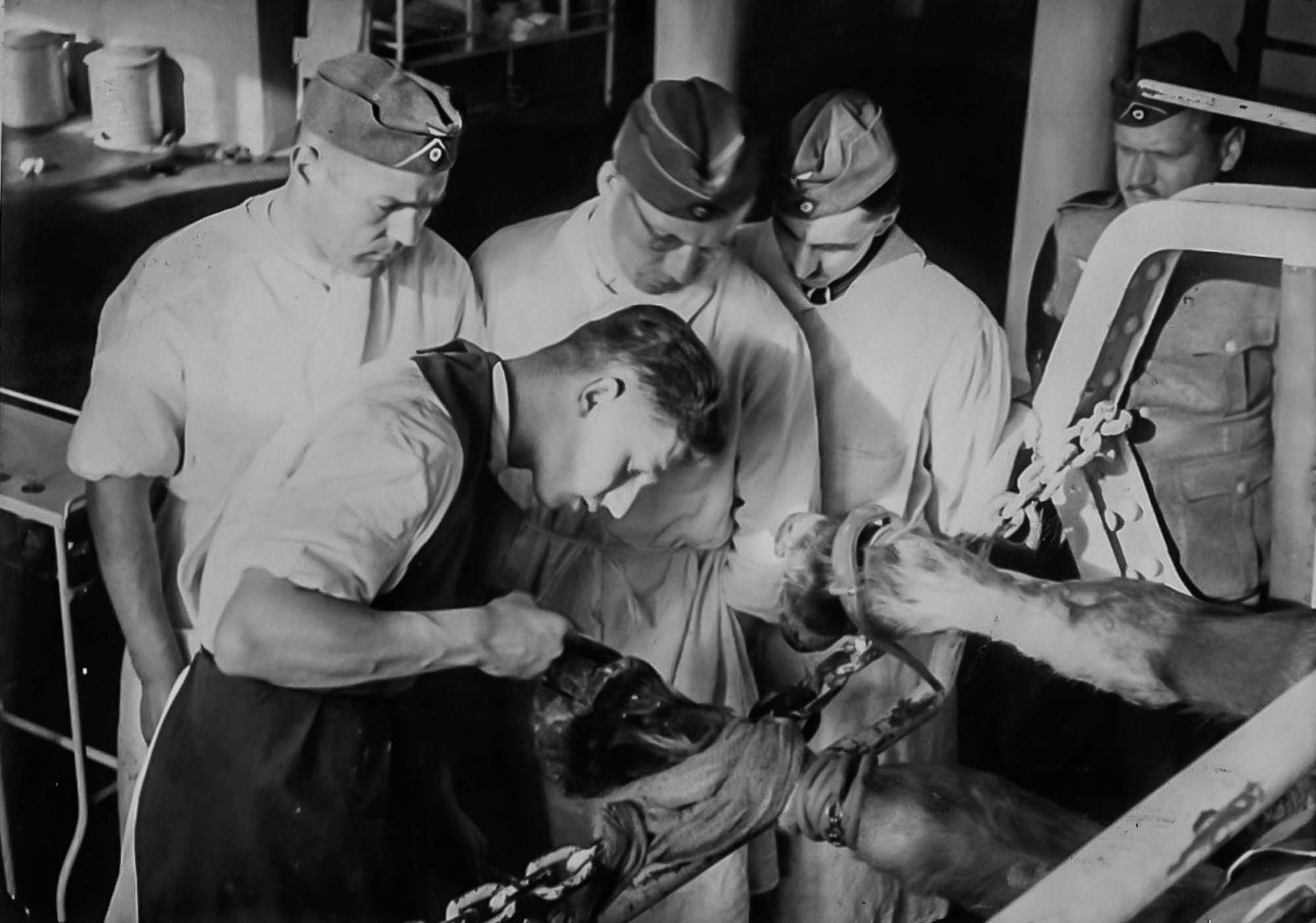 Die Wehrmacht übernahm das Schloss und alle Wirtschaftsgebäude und errichtete das größte Pferdelazarett an der Ostfront. In Spitzenzeiten waren bis zu 2000 Pferde untergebracht. Im Schloss befand sich die Verwaltung und Wohnräume für Offiziere und Veterinäre. Im Wirtschaftsgebäude wurden die Operations- und Behandlungsräume eingerichtet. Hauptsächlich Kavalleriepferde wurden im Pferdelazarett Katzelsdorf operiert bzw. gesund gepflegt.