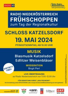 Die Abteilung Kultur.Region.Niederösterreich zur der das Museumsmanagement gehört, hat aufgrund unserer Aktivitäten sich entschlossen ihren geplanten Radio NÖ Frühschoppen am 19. Mai im Schloss Katzelsdorf zu veranstalten.