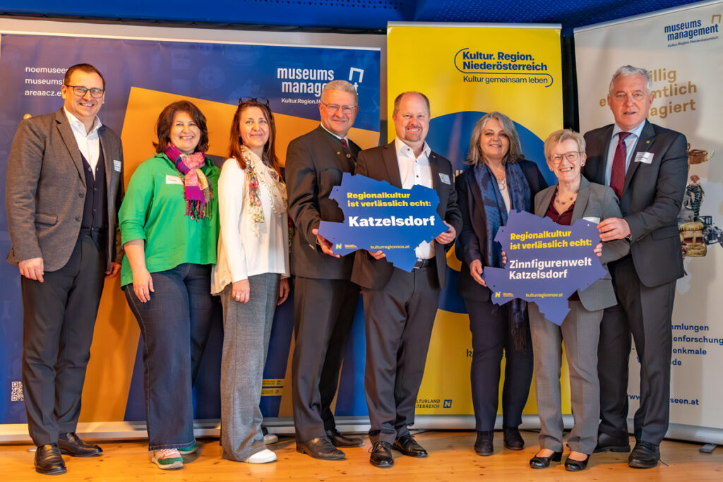 Mit der Plakette „Regionalkultur ist verlässlich echt“ verankert die Kultur.Region.Niederösterreich ein beständiges Zeichen der Bedeutung der Regionalkultur in allen 573 Gemeinden des Bundeslandes. Das Qualitätssiegel für verlässlich echte Kulturarbeit wird 2026 verliehen. Ausgezeichnet wurden nun die Zinnfigurenwelt Katzelsdorf und die Gemeinde Katzelsdorf.